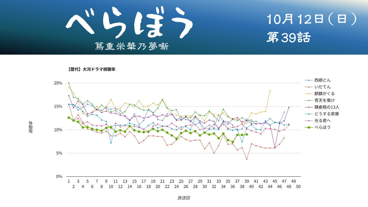 ビデオリサーチ調べ、リアルタイム(関東地区)の視聴率。