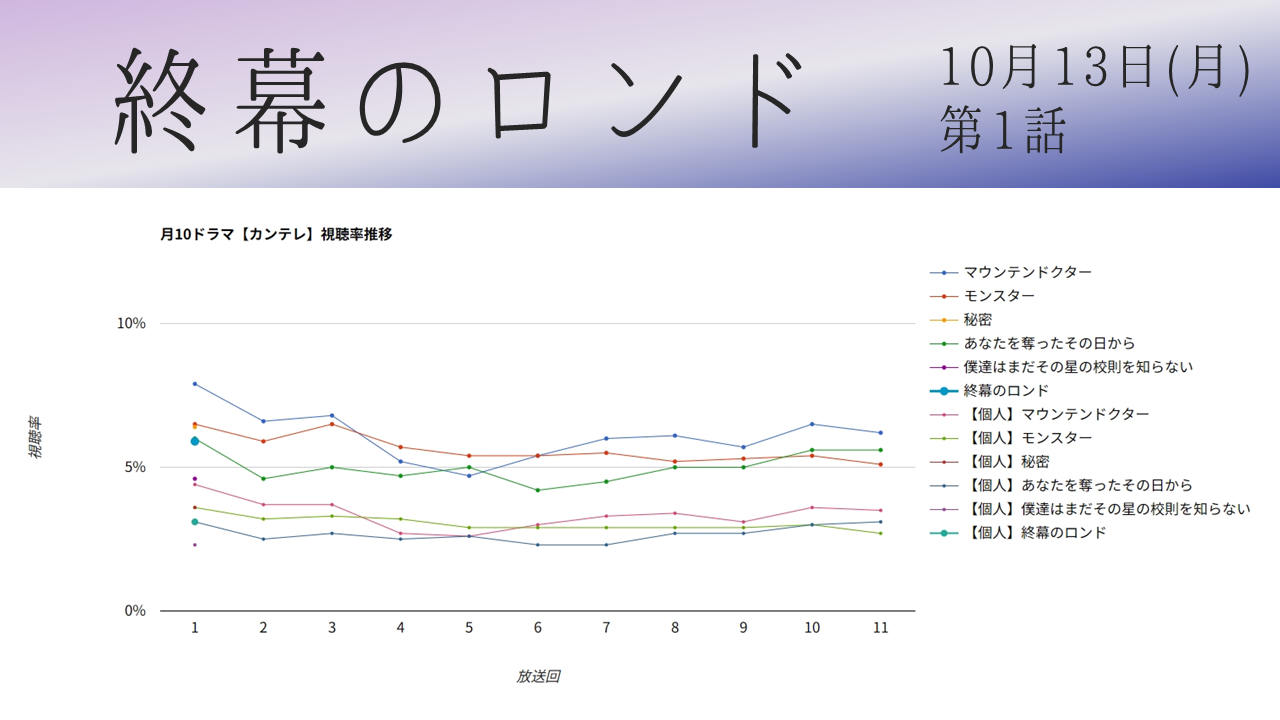 2024年10月期の「秋ドラマ」視聴率をご紹介します。 視聴率一覧表 グラフ推移 平均視聴率ランキング 3つの切り口で視聴率を比較していきましょう。最新の視聴率を速報更... -